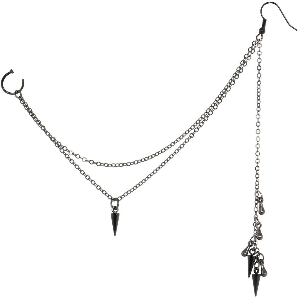 18 Gauge (1mm) and 3/8" Diameter, Anodized Titanium, 316L Surgical Grade Stainless Steel Nose Hoop, Black Plated Chain, Approximately 7 to 7.5 Inch Lengths, Brass Fishhook Earwire, Handmade in the USA